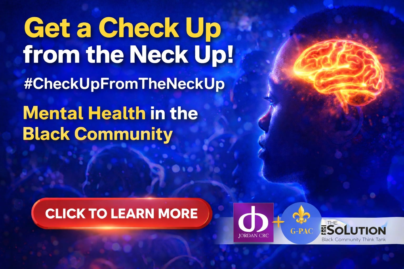 The SOLUTION, G-PAC, and Jordan Community Resource Center — united to elevate mental health awareness, education, and healing in our communities. Together, we’re building a movement where caring for your mind is just as normal as caring for your body.
