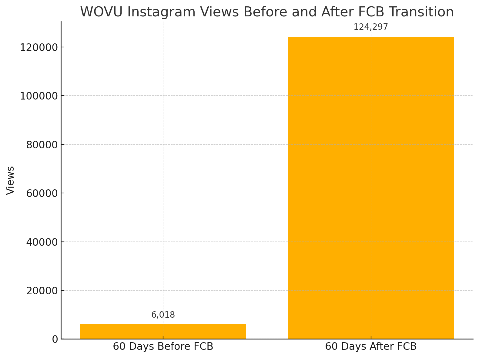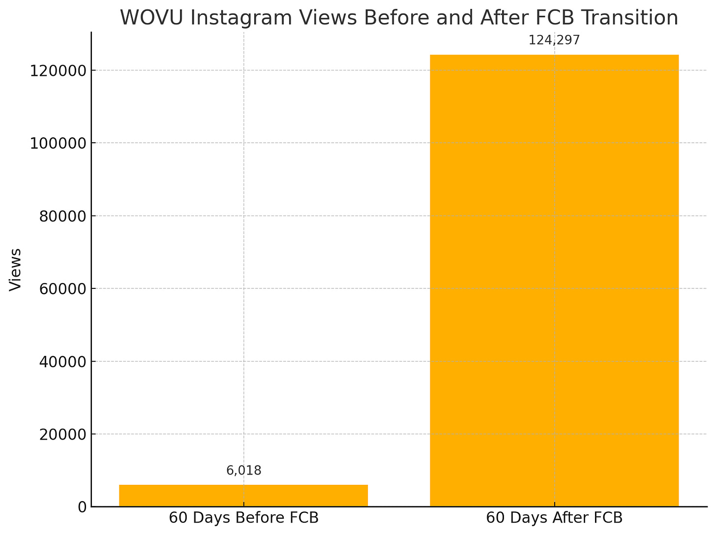 In just the first 60 days under FCB, WOVU’s Instagram performance skyrocketed from 6,018 views to 124,297 views — a staggering 1,965% increase.